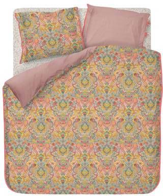 Dit herhaalde bloemdessin is opgebouwd uit een variatie van fantasierijke chintzbloemen en bladeren. Symmetrisch geplaatste bloementakjes met uitgewerkte decoratieve bloemen geven dit overtrek een luxe gevoel. De achterkant heeft een tonale horizontale streep. Het dekbedovertrek is luxueus met een rijke uitstraling. De slopen en het dekbedovertrek hebben een Oxford rand aan de zijkanten met een platte bies in accentkleur. De slopen hebben twee verschillende kanten. Door de unieke striksluiting kunnen de slopen, net als het dekbedovertrek, dubbelzijdig gebruikt worden. Dit geeft een leuk mix-and-match effect op je bed.Het dekbedovertrek is niet alleen een blikvanger in je slaapkamer, door het gebruik van 100% percal katoen is hij ook nog eens heerlijk zacht. De extra luxe 200TC weefdichtheid zorgt ervoor dat de stof langer mooi blijft. Het dekbedovertrek maak je eenvoudig op dankzij de extra lange instopstrook. Daarna stop je hem gemakkelijk in aan de onderkant van je matras.. Je kan het overtrek wassen tot 60 graden, hij is geschikt voor de wasdroger en je kan hem ook strijken. Hoewel de hoogwaardige kwaliteit er voor zorgt, dat strijken eigenlijk niet nodig is.